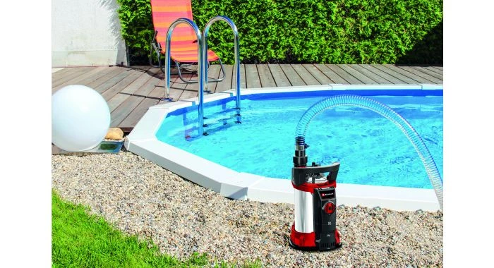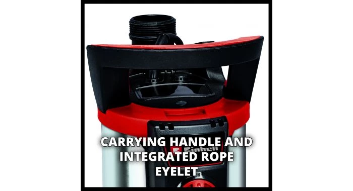 La pompe d’évacuation eau claire Einhell GE-SP 4390 N-A LL ECO avec technologie Aquasensor est une aide puissance pour tous les besoins d’extraction d’eau claire. Grâce à la technologie AquaSensor, système de capteur intégré breuveté, vous pouvez paramétrer la pompe sur trois hauteurs de démarrage automatiques différentes (5 / 56 / 103 mm) ou sur un fonctionnement continu. La conception fine de la pompe, grâce au capteur de niveau intégré, permet une utilisation dans les endroits les plus exigües. Le gros avantage de pompe réside dans son aspect écologique. Les données techniques sont impressionnantes et soulignent son aptitude à une utilisation universelle, pour un large éventail de situations. Avec sa puissance de 430 W, la pompe permet de puiser de l’eau claire jusqu’à une profondeur d’immersion de 7m, et dispose également d’une valve anti-retour. La température maximale de l’eau est de 35°C . La pompe d’évacuation eau claire EINHELL GE-SP 4390 N-A LL ECO fonctionne à partir d’1mm de profondeur d’eau, de sorte que le peu qui reste peut être facilement essuyé à l’aide d’une serpillère. Le corps de la pompe est constitué de plastique résistant aux chocs avec une enveloppe extérieure en acier inoxydable et un joint mécanique de haute qualité, offrant à la pompe une excellente robustesse et durabilité. La pompe à eau claire est dotée d’une poignée de transport ergonomique, d’une anse de suspension intégrée et d’un raccord de tuyau universel. Le raccord du tuyau est facilement accessible sur le dessus de la pompe.