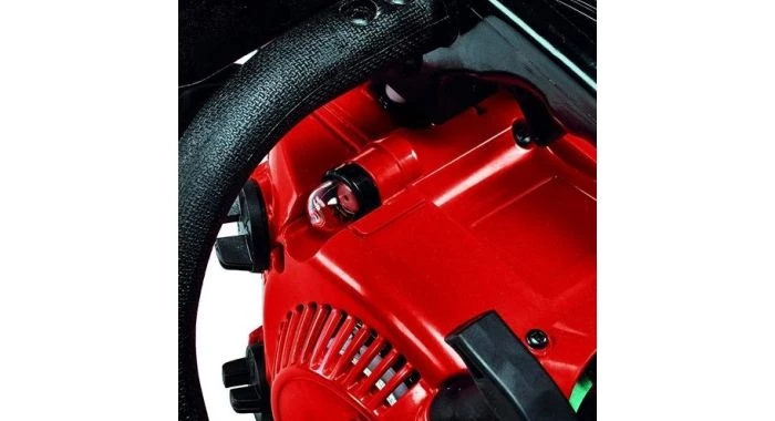 La tronçonneuse thermique à une main GC-PC 730 I est un outil compact, maniable, puissant et fiable pour élaguer et émonder des arbres et des haies d’arbustes. Le moteur de cette petite tronçonneuse se démarre facilement grâce au starter, au bouton d’amorçage et à l’allumage numérique prévu en complément. La tronçonneuse GC-PC 730 I dispose d’un très bon équipement de sécurité. Une pression sur le protège-main active le frein de chaîne : la chaîne s’arrête en quelques millièmes de seconde. La protection anti-rebond empêche le recul de la tronçonneuse si la chaîne vient à se bloquer dans le bois. La grande butée dentée métallique, très solide, assure à tout moment un guidage sûr de l’outil, et fait fonction de pivot pour scier des souches. Au ralenti, l’embrayage centrifuge désaccouple la chaîne du moteur. Grâce à l’arbre de transmission à paliers latéraux, le fonctionnement du moteur à essence ne produit aucune vibration. Le système anti-vibration intégré procure en outre un grand confort même lors d’une utilisation prolongée. Le guide-chaîne et la chaîne sont toujours lubrifiés grâce au système très pratique de lubrification automatique. L’outil comprend de série une protection pour le guide-chaîne et une chaîne de rechange. AVERTISSEMENT : Cette tronçonneuse ne doit être utilisée que par des jardiniers professionnels.